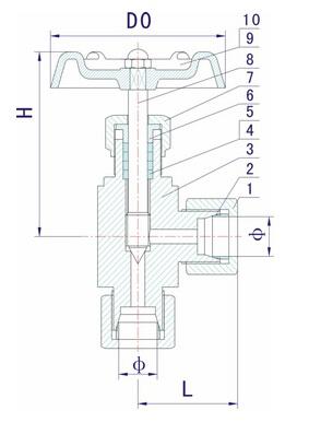 3. 結(jié)構(gòu)特征: 錐面或球面密封,直角式